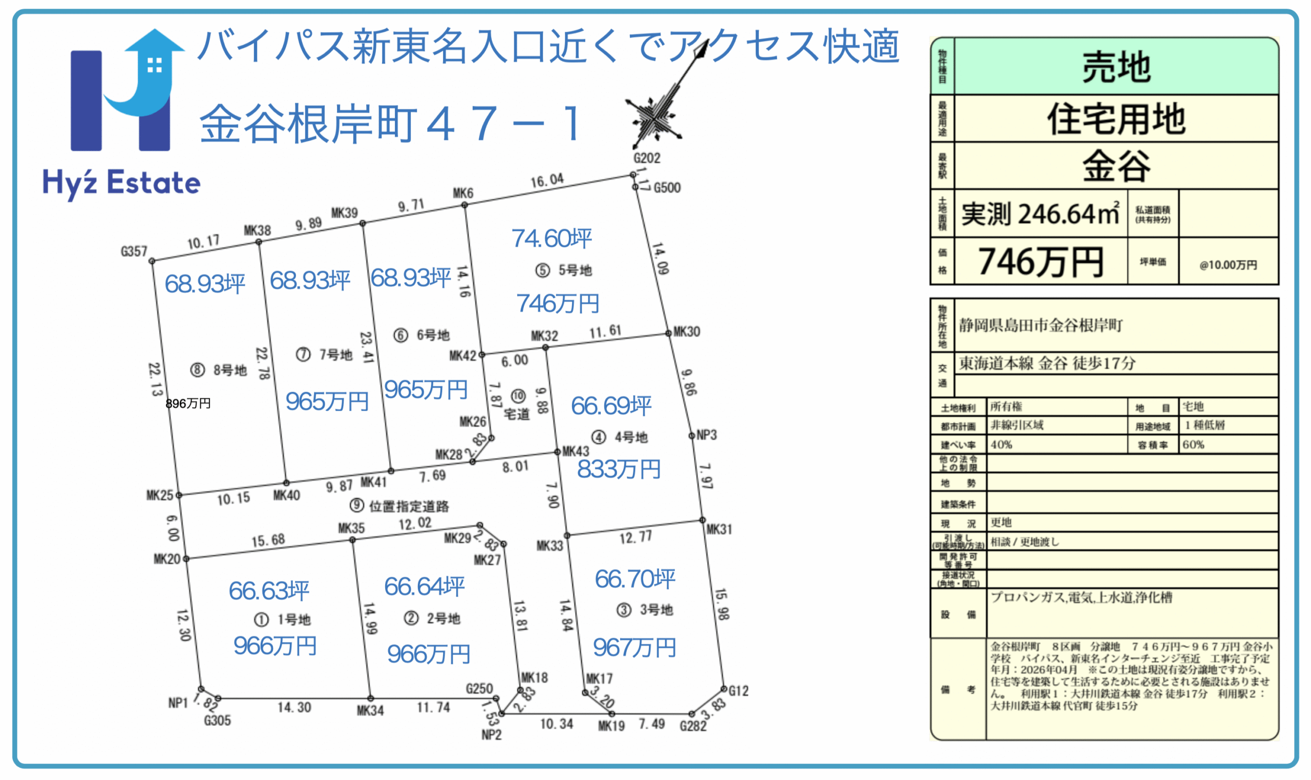 島田市金谷根岸町に全8区画の新規分譲地が誕生。